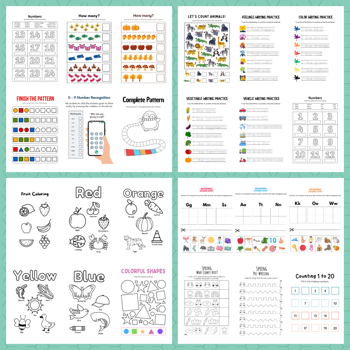 The pack includes tracing, counting, matching, sorting, ABCs, numbers, shapes, colors, early math, fine-motor practice, and much more. All worksheets are ready to print, easy to use, and designed to keep little learners excited every day!