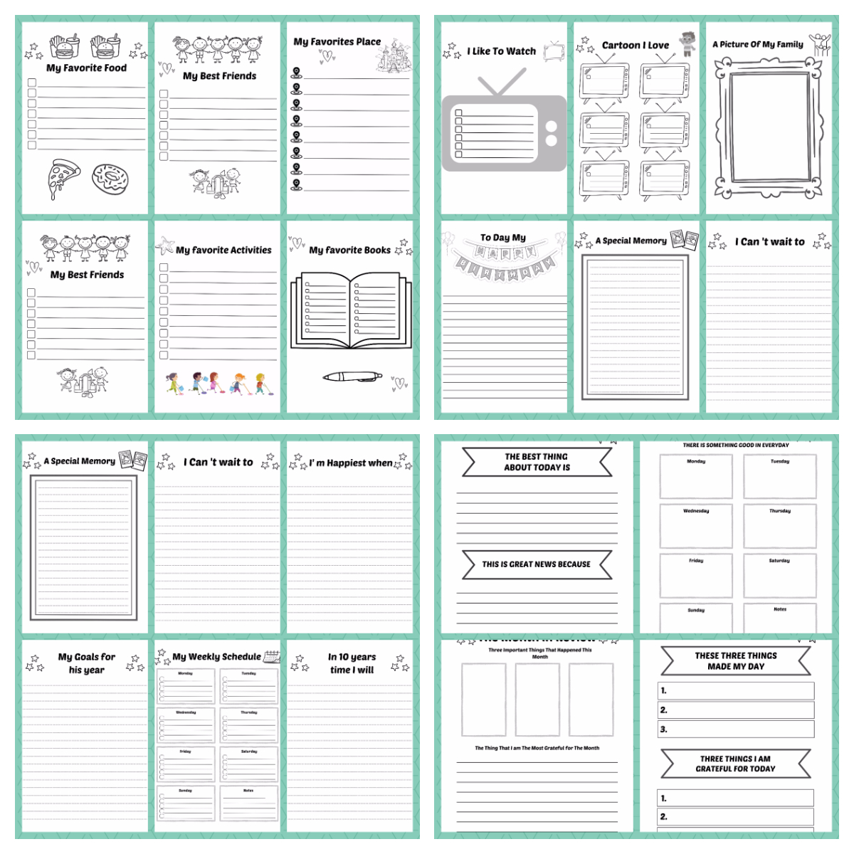 • Kid-friendly layout — large writing areas and big doodle boxes