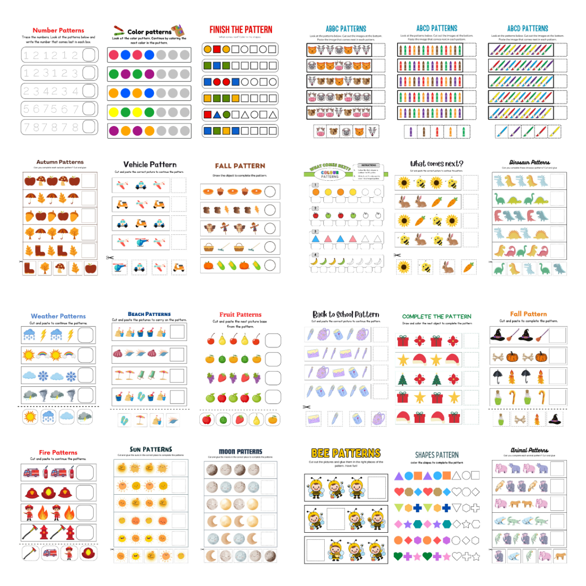 ✔ Cut-and-paste pattern activities