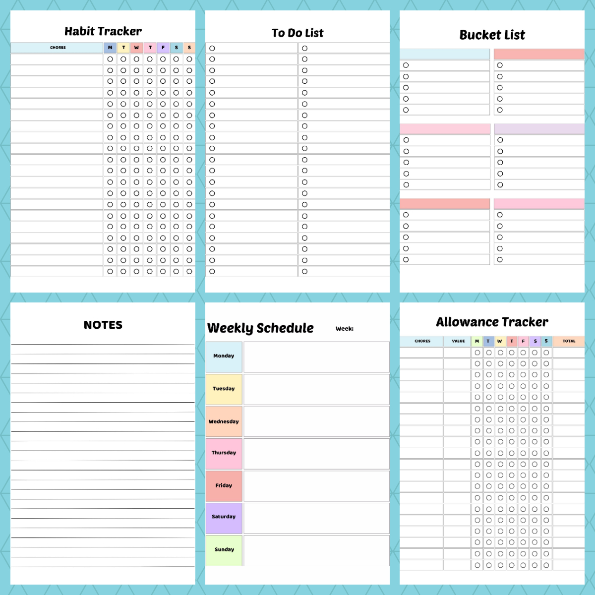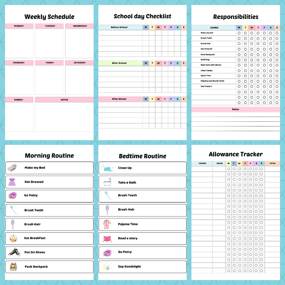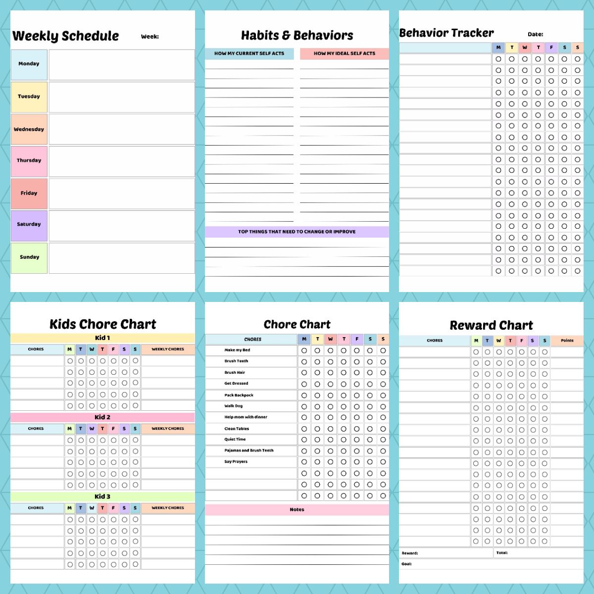 • ✔ Weekly chore charts